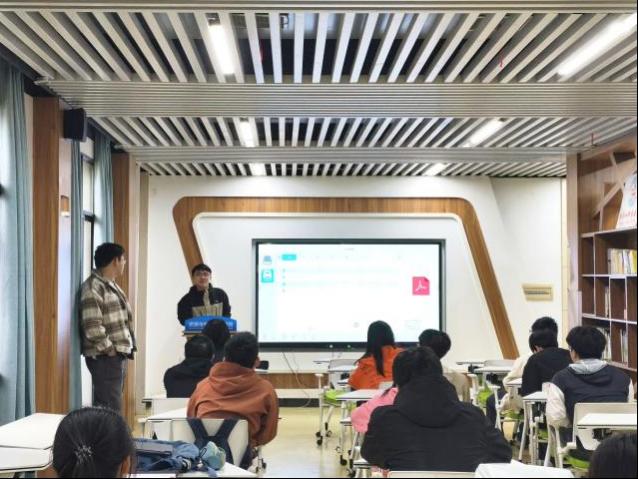戴名誉同学聚焦项目全周期备赛,从选题立项、过程推进到成果落地进行深度分享。白渊淏同学围绕赛事全要素指导,系统讲解参赛项目选择、时间规划、团队分工、研究方法、知识储备等核心内容。活动现场氛围热烈,互动交流环节中,同学们踊跃提问,就选题方向、备赛规划、团队协作等困惑与主讲人深入交流。