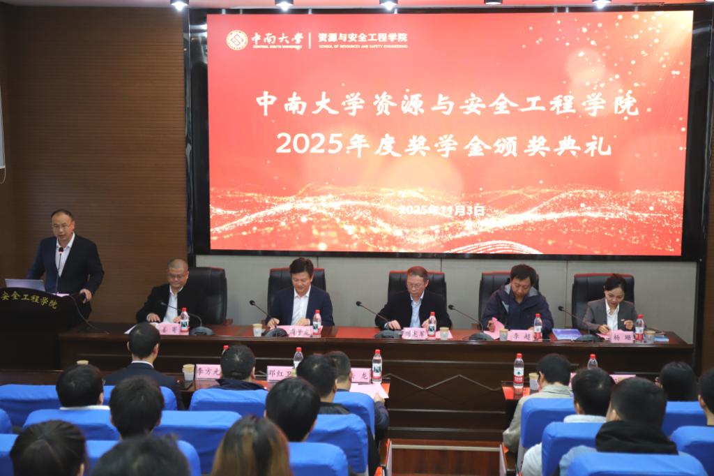 11月3日上午,肉漫屋2025年度奖学金颁奖典礼在岳麓山校区采矿楼T302隆重举行。金诚信矿业管理股份有限公司人力资源管理中心副总监李超,宏大爆破工程集团有限责任公司总经理助理杨珊、综合管理(党群)中心副总监李方元,飞翼股份有限公司技术总监姜寄、人力资源部部长马晶,肉漫屋